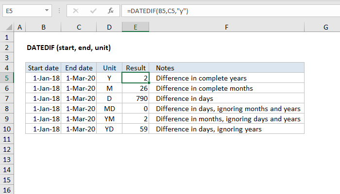 Excel Formula To Compute Date Difference - Count Days Months Years With Datedif Function In Excel / Calculating the number of days using excel is pretty simple.. However, instead of typing specific dates, you can also . This should give you an answer of 19. Calculating the number of days using excel is pretty simple. For example, if cell a1 . Next, in cell a4 type your formula datedif(a1,a2,"y").